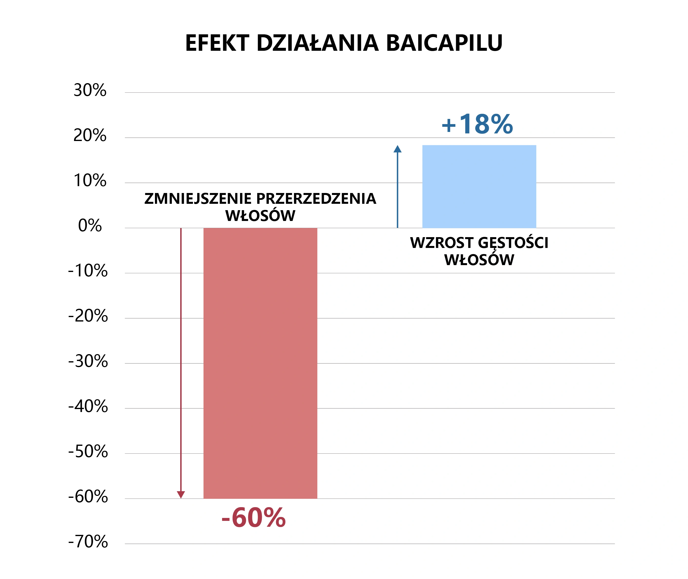 • Kompleks Baicapil™ pomaga w naprawie uszkodzonych mieszków włosowych. Badania wykazały, że wypadanie włosów zmniejsza się nawet o 60%, a ich gęstość wzrasta o 18%.
